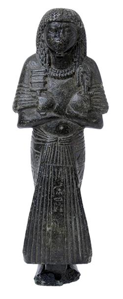 Torso di statua in basalto raffigurante una figura femminile (divinità?), dall'Egitto