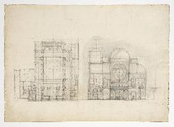 Progetto per il tempio israelitico in Trieste. Sezione trasversale attraverso la scala e la torre