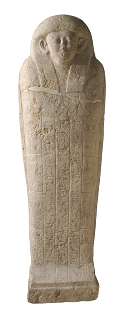 Ushabti in pietra calcarea con uccello-ba, dall'Egitto