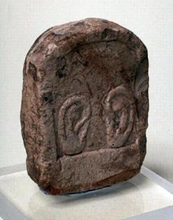 Stele miniaturistica in pietra calcarea con raffigurazione di orecchie, dall'Egitto