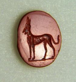 Gemma con figura di levriero in diaspro rosso