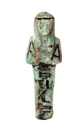 Usciabti in faience, inv. 39250; Statuetta funeraria mummiforme, dall'Egitto
