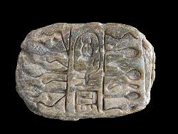 Sigillo in marmo con Kheper tra due file di alberi, dall'Egitto