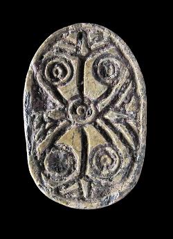 Scaraboide in steatite con motivo geometrico, dall'Egitto