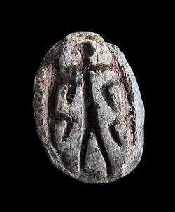 Scarabeo in steatite con geroglifici indecifrabili, dall'Egitto