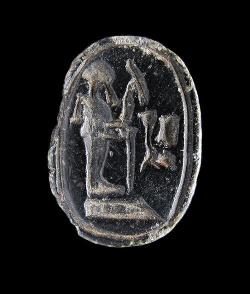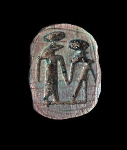 Scarabeo in faience con due divinità, dall'Egitto