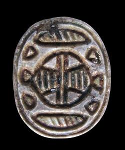 Scaraboide in steatite con motivo geometrico, dall'Egitto