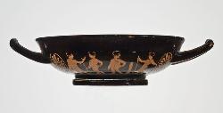 Kylix skyphoide apulo a figure rosse. Lato A e B: testa femminile.