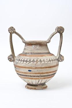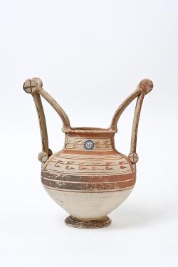 Olla con anse a scalpello e rotella in ceramica messapica