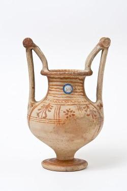 Trozzella in ceramica messapica con motivo vegetale e anfora