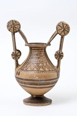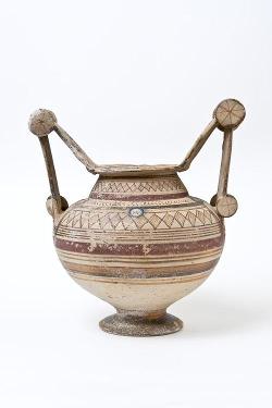 Olla con anse a scalpello e rotella in ceramica messapica