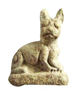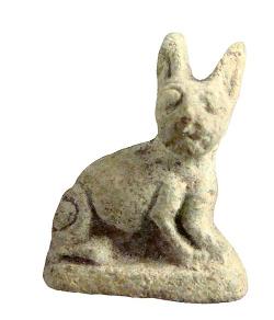 Amuleto a forma di gatto con foro passante al collo, dall'Egitto