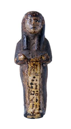 Ushabti in faience bicroma appartenuto a una donna, dall'Egitto