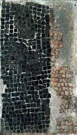 Mosaico a tessellato nero con inserti lapidei da Trieste villa di Barcola, dall’atrio tuscanico G’