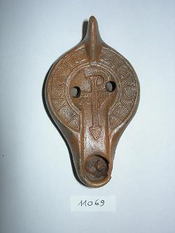 Lucerna tardoantica con croce monogrammatica