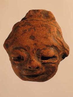 Applique di vaso a testa umana in ceramica da El Salvador