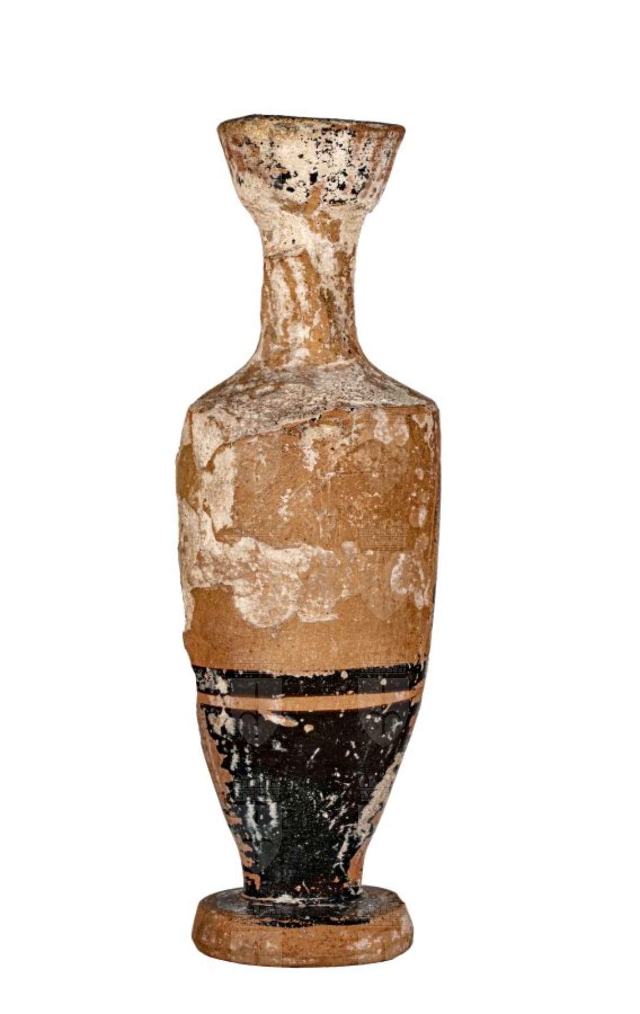 Lekythos attica a figure nere con motivi decorativi di crocette e puntini