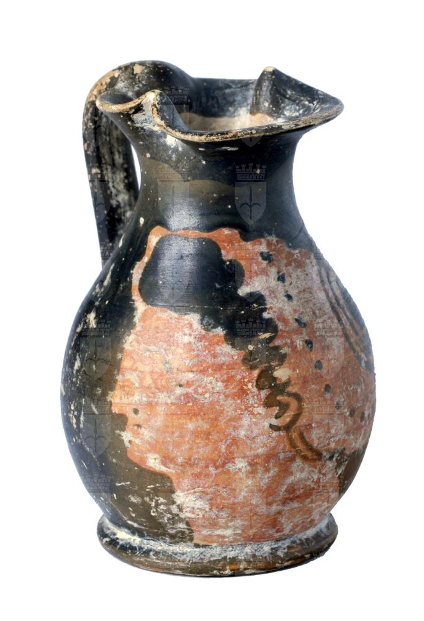 Stamnos miniaturistico apulo a figure rosse con teste femminili