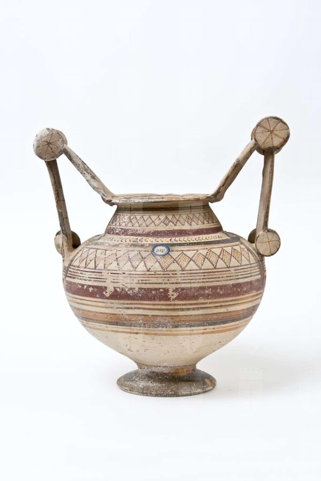 Olla con anse a scalpello e rotella in ceramica messapica