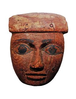 Maschera pertinente a un sarcofago in legno dipinto, dall'Egitto