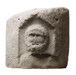 Rilievo con testa di Ercole in calcare