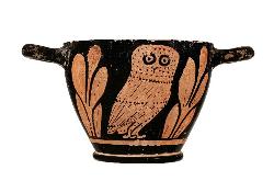 Skyphos apulo a figure rosse. Lato A e B: civetta