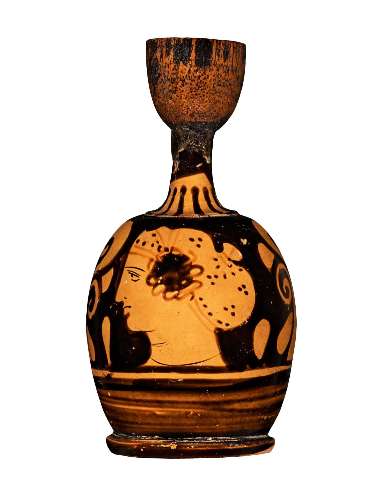 Lekythos attica a figure rosse con donna con specchio da Corinto