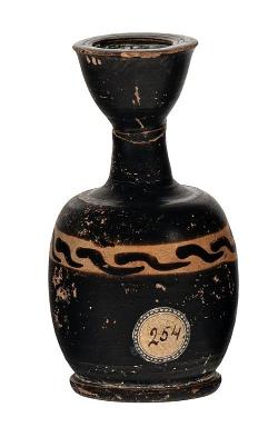 Lekythos ariballica attica a figure nere con fascia a meandro