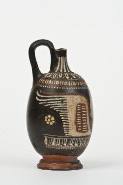 Lekythos attica a figure rosse con palmetta ad antefissa.