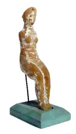 Statuetta di donna seduta priva di braccia in terracotta