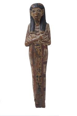 Ushabti in legno dipinto appartenuto a una cantante del dio, dall'Egitto