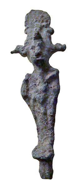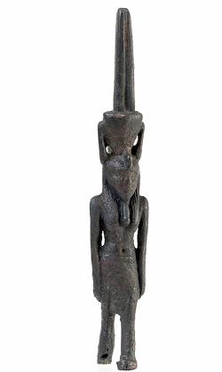 Amuleto in bronzo raffigurante Osiride con perno sotto i piedi, dall'Egitto