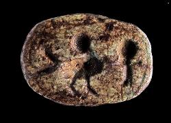 Scarabeo in steatite con due uomini stanti, dall'Egitto
