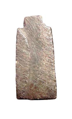 Amuleto con una doppia piuma incisa su un lato, privo del foro, dall'Egitto