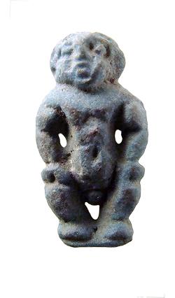 Amuleto in faience raffigurante Bes, privo delle gambe, dall'Egitto