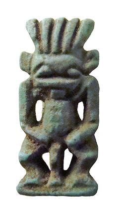 Amuleto raffigurante Bes con foro passante nelle piume, dall'Egitto