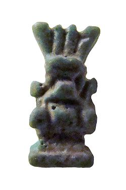 Amuleto in faience raffigurante Bes bifronte, con la corona spezzata, dall'Egitto