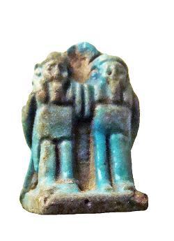 Amuleto raffigurante Iside e Horo con pilastro dorsale forato e basetta, dall'Egitto