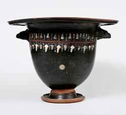 Cratere a campana con maschera a vernice nera sovraddipinta