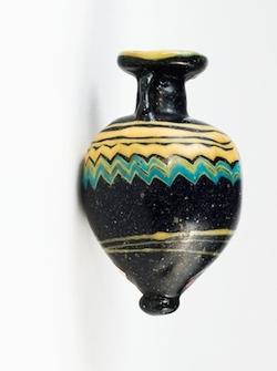 Hydria miniaturistica apula a figure rosse con testa femminile.