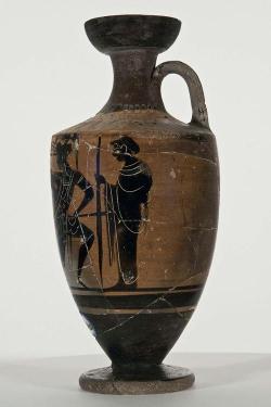 Lekythos a vernice nera sovraddipinta