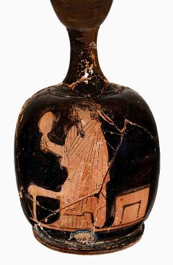 Lekythos attica a figure rosse con donna con specchio da Corinto