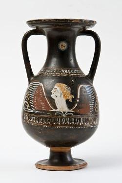 Pelike apula a figure rosse. Lato A e B:testa grmminile