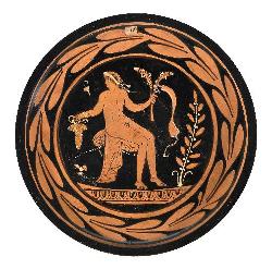 Piatto apulo a figure rosse con giovane nudo