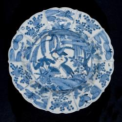Piatto "bianco e blu" da esportazione, di tipo Kraak