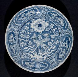 Piatto "bianco e blu" da esportazione, di tipo Swatow