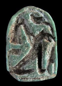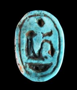 Scaraboide in faience con segni geroglifici, dall'Egitto