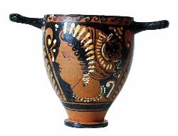 Skyphos apulo a figure rosse. Lato A e B: testa femminile.