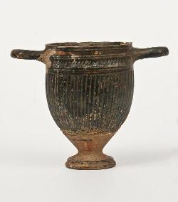 Skyphos su stelo a vernice nera sovraddipinta