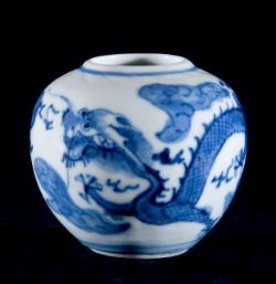 Piccolo recipiente per acqua "bianco e blu" con drago